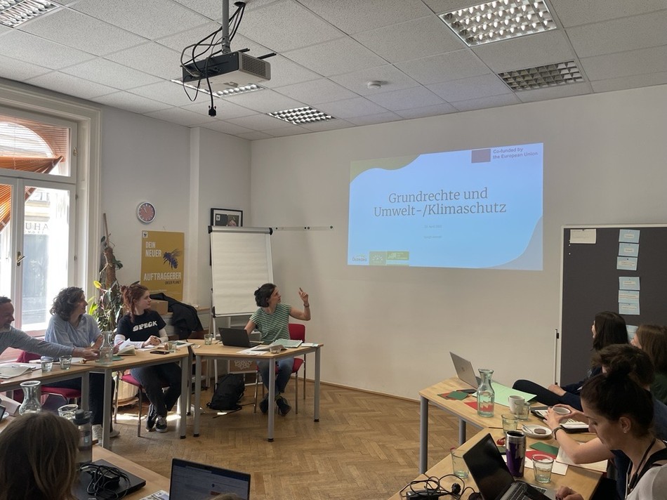 Als Einstieg ins Thema wurden die Teilnehmer:innen über die Grundrechte-Landschaft in Österreich aufgeklärt. In Österreich stehen insbesondere die verfassungsgesetzlich gewährleisteten Rechte des Staatsgrundgesetzes und der Bundesverfassung sowie die Europäische Menschenrechtskonvention (EMRK) im Verfassungsrang. In Bezug auf den Umwelt- und Ressourcenschutz auf nationaler Ebene enthält das BVG Nachhaltigkeit Staatszielbestimmungen. Auf EU-Ebene kommt der EU-Grundrechtecharta besondere Bedeutung zu. Die EU-Grundrechtecharta richtet sich nicht nur an die Organe und Einrichtungen der EU, sondern auch an die Behörden der Mitgliedstaaten, wenn sie EU-Recht umsetzen. Darüber hinaus können sich auch einzelne Personen auf die Bestimmungen der Charta berufen, wenn EU-Mitgliedstaaten nationale Gesetze zur Umsetzung einer EU-Richtlinie erlassen, anwenden oder wenn ihre Behörden eine EU- Verordnung direkt anwenden.